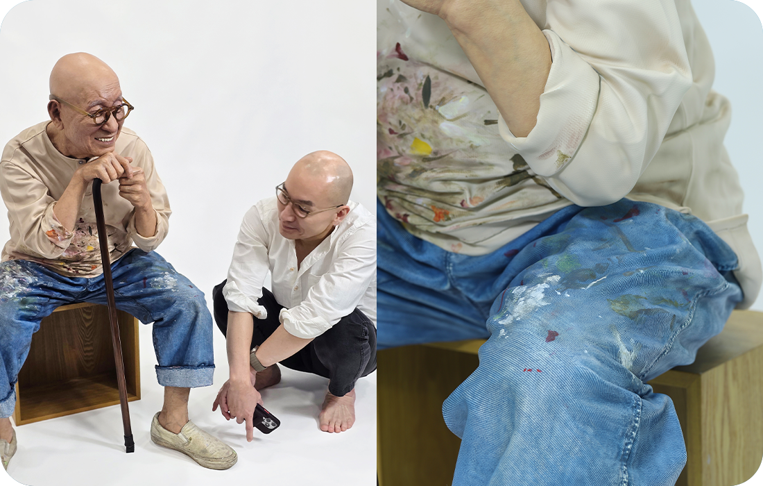 '프리즈 서울 2025'에서 공개된 한국 추상미술의 거장 故 박서보 화백 좌상은 3D스캐닝부터 정밀 출력, 전문 채색에 이르는 전 과정을 통해 화백이 착용했던 의상의 패브릭 질감, 바지에 묻은 물감 자국, 그리고 세월이 담긴 피부 결까지 극사실적으로 구현했습니다.