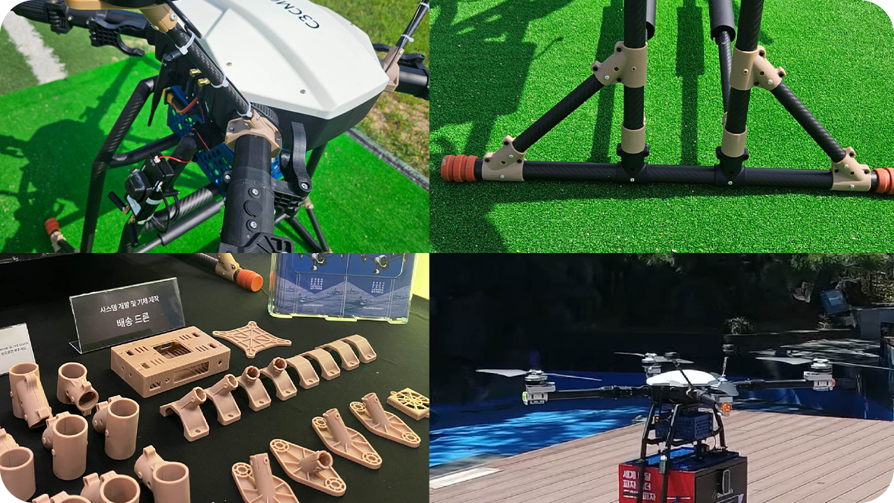 In 2023, the 'Drone Pizza Delivery' project, conducted under a contract with Domino's Pizza, the No. 1 pizza brand in Korea, attracted the attention of many. To ensure the success of this project, GLUCK supported the development of the delivery drone by manufacturing various core parts using 3D printing.
