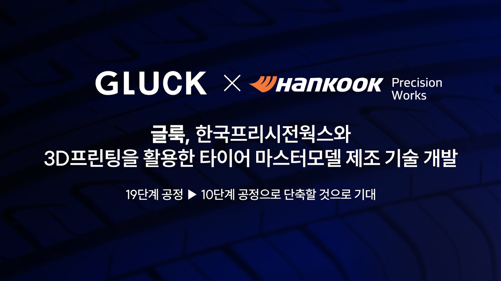 현재 GLUCK은 한국프리시전웍스와 협력하여 타이어 마스터 모델의 정밀도 검증을 진행하고 있으며, 동시에 3D Printing 기술의 상용화를 위한 정부 지원 과제도 수행하고 있습니다.