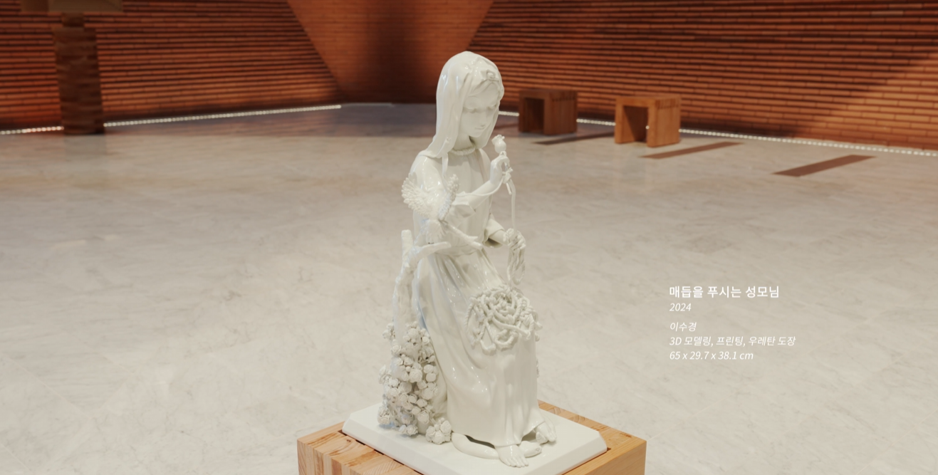 <매듭을 푸시는 성모님 2024>은 예술가의 철학, 디자이너의 정교한 아이디어, 그리고 3D프린팅 기술의 가능성이 하나로 이어진 결과입니다. 그리고 이 조용한 성지 위에 놓인 조형은, 예술이 기술을 만났을 때 무엇이 가능한지를 우리에게 묻고 있습니다.