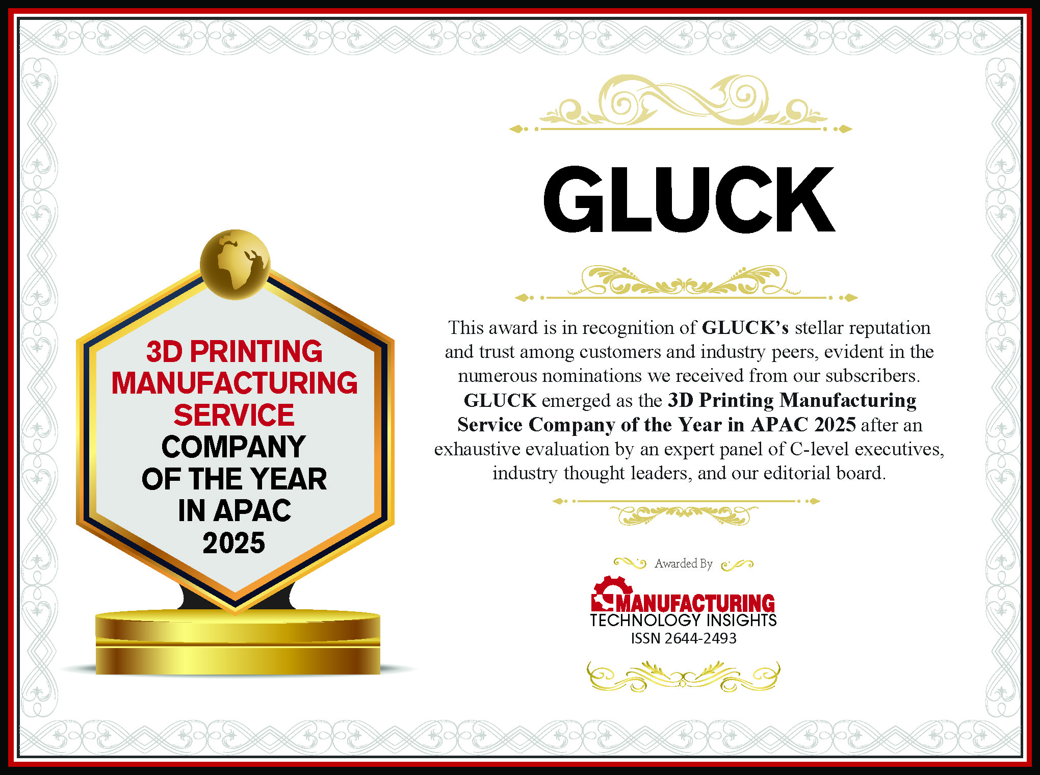 GLUCK | 3D Printing Manufacturing Service Company Of The Year in APAC-2025}