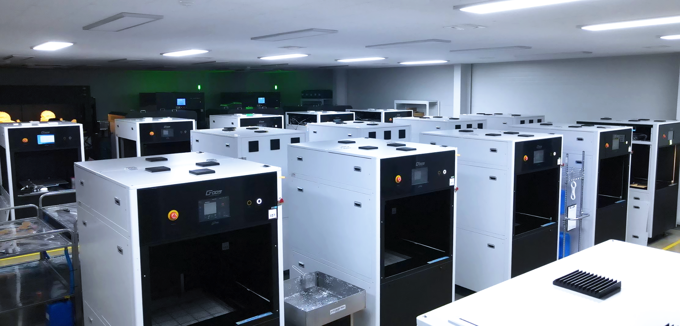 2M급 (2,000*1,000*700mm) , 1M급 (1,000*800*600mm), 600급 (600*600*400mm) 프린터 약 30기를 보유한 팩토리를 파주에서 운용 중 이며, 본사(마포구)에서 원격으로 장비ㆍ소프트웨어 컨트롤과 일정을 관리하며, 팩토리(파주)에서 자동화 공정으로 출력의 전처리 과정이 이루어지는 국내 최대규모 3D프린팅 양산 제조라인 구축하였습니다.
