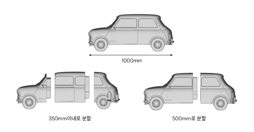 한 번에 출력 가능한 크기를 초과하는 경우, 분할하여 출력 후 접합작업으로 진행됩니다.