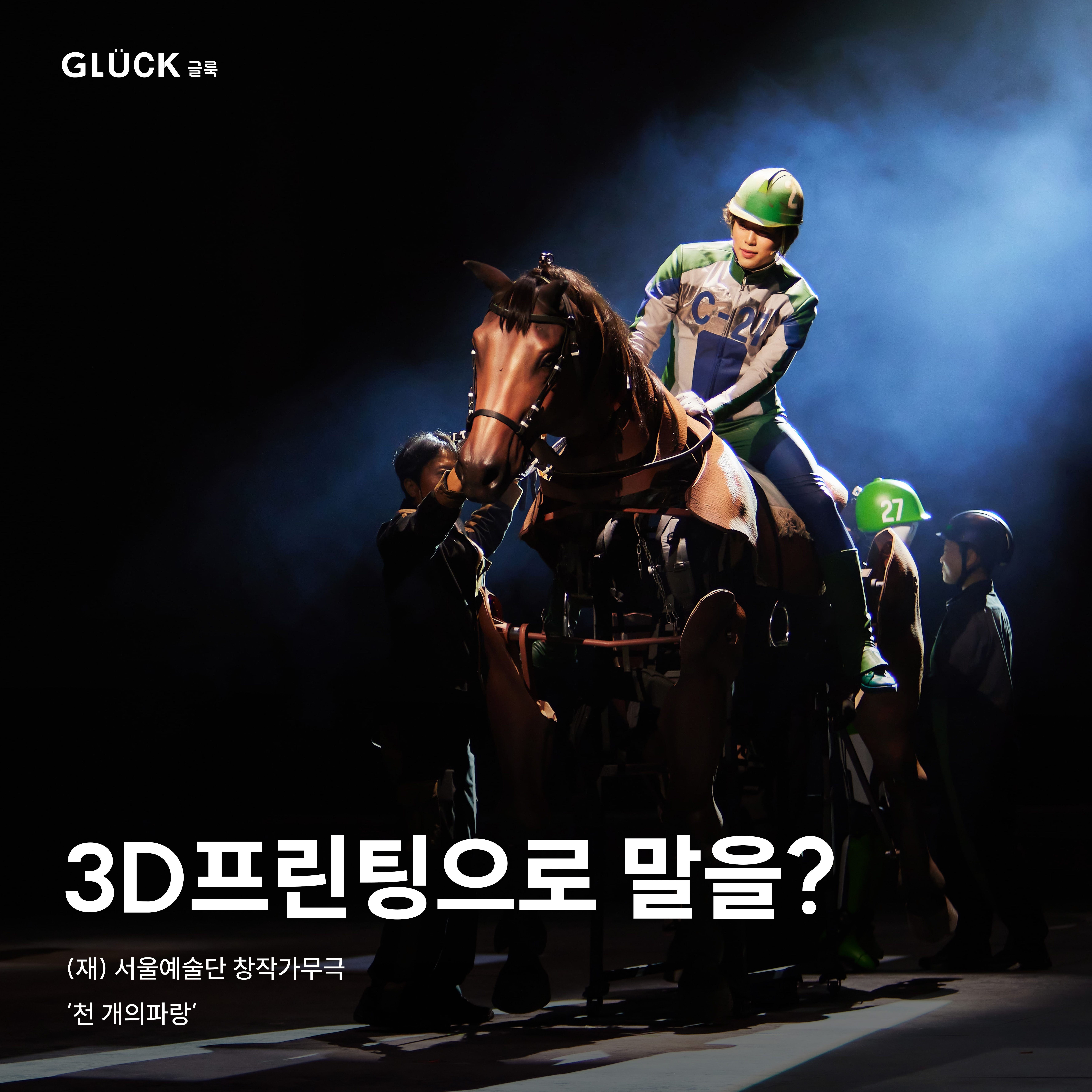 이 과정에서 글룩(GLUCK)의 3D프린팅 기술은 160cm 크기의 말 외피와 복잡한 구조를 지닌 로봇들을 무대에 실제로 구현해, 높은 몰입감을 선사하였습니다.